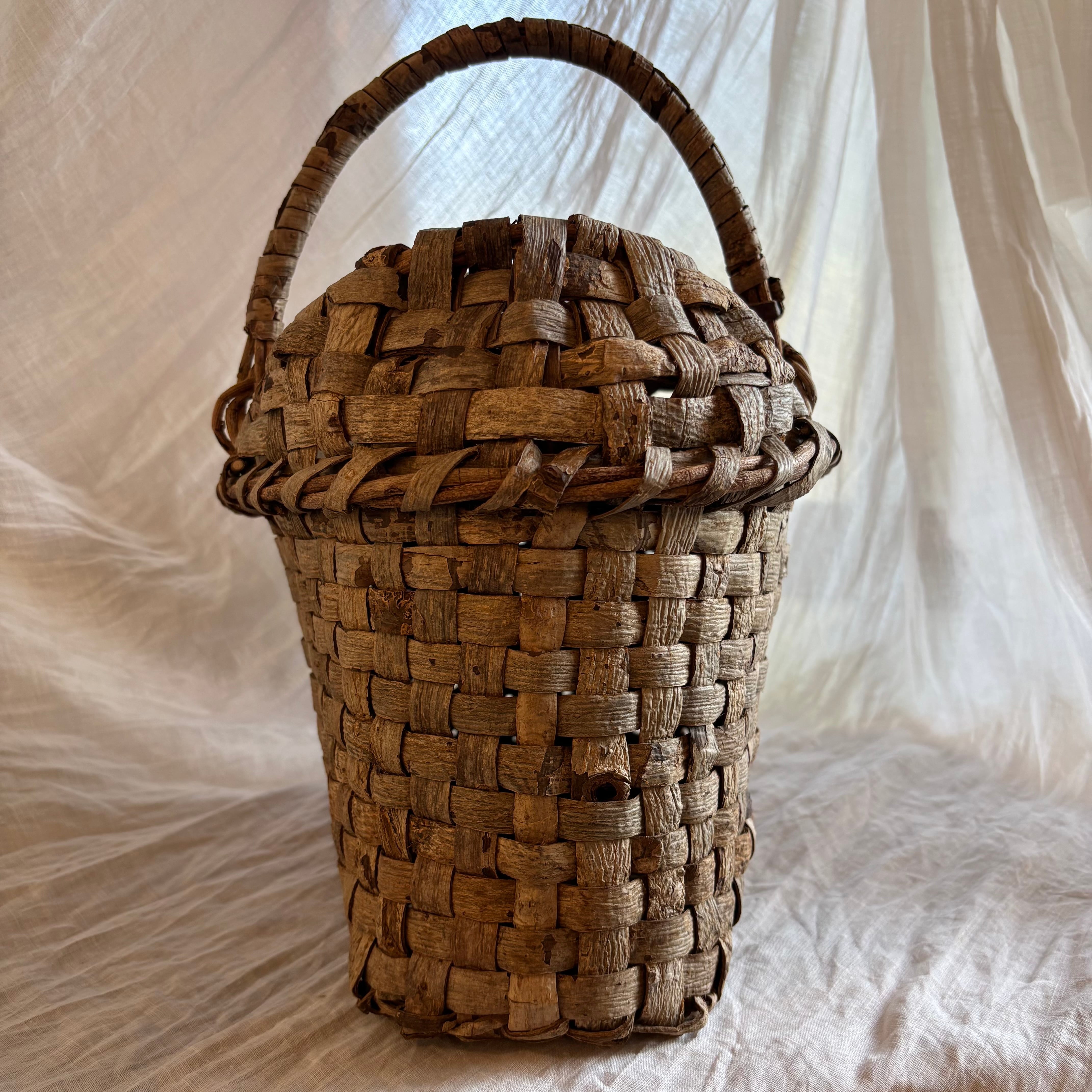 くるみの皮の表皮側を使って編んだかごバッグです。